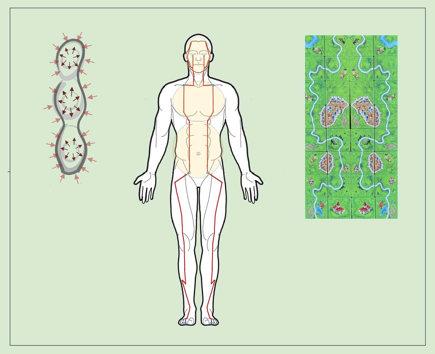 You can read more about the curves in the clavicular and groin areas in Four Gates.